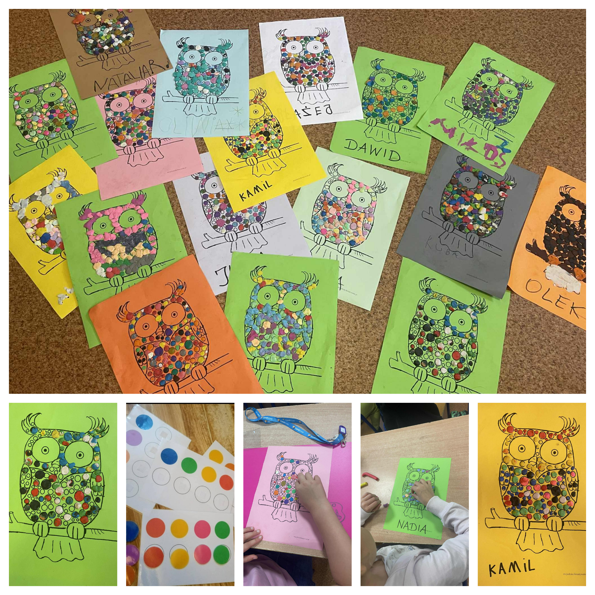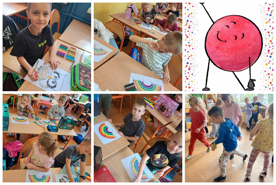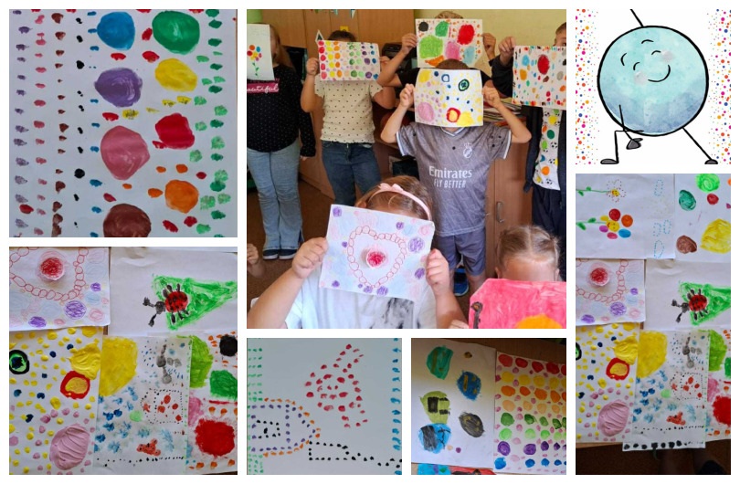 Tworzyliśmy różnorodne prace plastyczne z wykorzystaniem kropek. Uczniowie rozwiązywali kropkowe zagadki, z zaangażowaniem opowiadały o swoich pracach    i  z odwagą prezentowały swoje umiejętności. Było kolorowo, radośnie i twórczo.