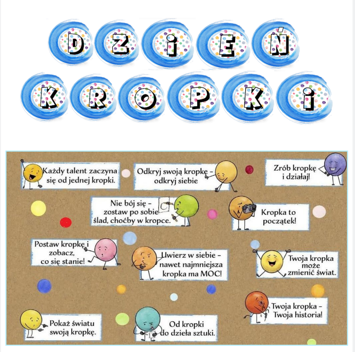 15 września 2025 roku klasy I-III  świętowały Międzynarodowy Dzień Kropki, czyli The Dot Day. Międzynarodowy Dzień Kropki to święto odkrywania talentów, kreatywności, odwagi, a przede wszystkim dobrej zabawy. Jego celem jest pomoc dzieciom w odkrywaniu własnych talentów, poznaniu mocnych stron, wyrabianiu wiary we własne siły...