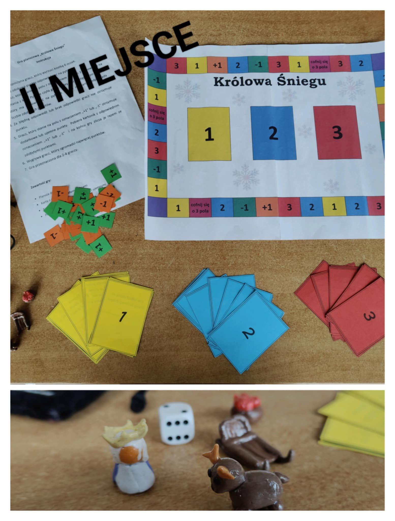 W naszej szkole odbył się konkurs „Czytaj i graj”, który połączył pasję do literatury z kreatywnością. Zadaniem uczestników było przeczytanie wyznaczonej lektury i stworzenie na jej podstawie autorskiej gry planszowej. Uczniowie klas 4–6 pracowali z baśnią H.Ch. Andersena pt. „Królowa Śniegu”, natomiast klasy 7–8 zmierzyły się z kryminałem A. Christie „Morderstwo w Orient Expressie”.