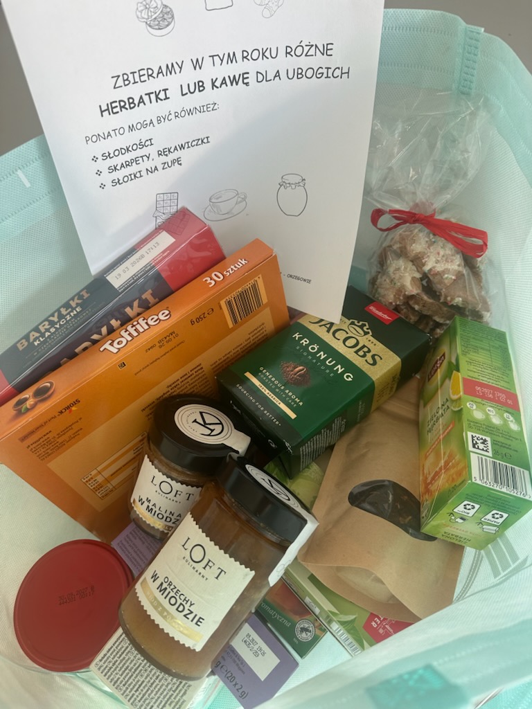W ramach akcji "Podziel się ciepłem" przekazaliśmy reklamówkę herbat, kaw, a także słodkości oraz słoiki siostrom Elżbietankom w Rudzie Śląskiej, aby mogły przygotowywać potrzebującym gorące napoje.